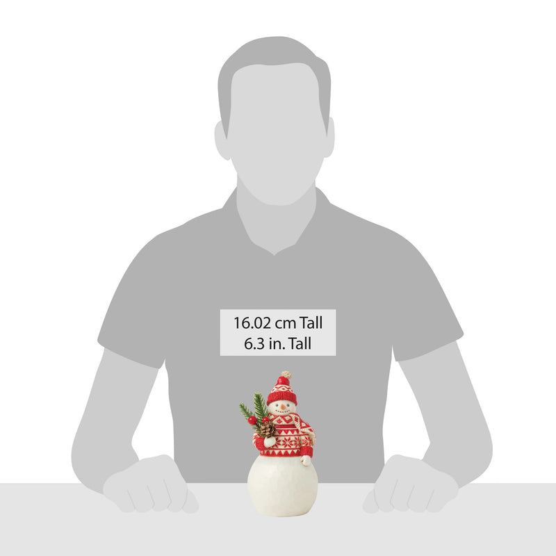 Ce joyeux bonhomme de neige nordique est vêtu d'un pull, d'une écharpe et d'un bonnet, dégageant cet esprit festif de Noël. Avec un large sourire, il tient une branche de sapin frais dans ses mains et une pomme de pin. Conçue par l'artiste primé Jim Shore pour la collection Heartwood Creek. Chaque figurine est peinte à la main et de légères variations de couleur sont à prévoir, ce qui rend chaque pièce unique. Ces articles ne sont pas des jouets pour enfants. Destiné aux adultes uniquement.