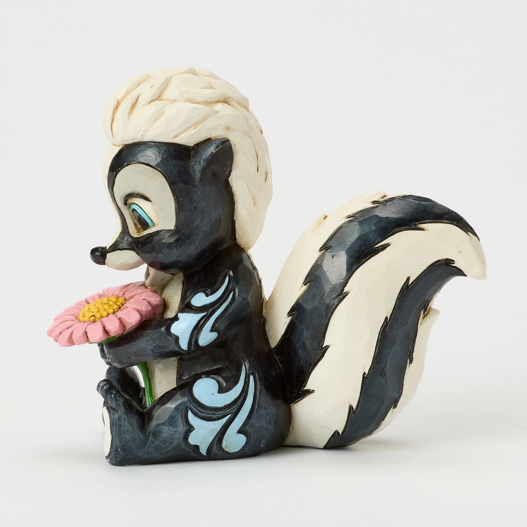 "Cette adorable miniature signée Jim Shore met en scène Fleur, la moufette de Bambi, décorée de motifs rosemaling éclatants et tenant un bouquet de fleurs fraîches. Souriante et empreinte d’une innocence enfantine, elle rayonne de douceur et de charme, incarnant à merveille l’esprit tendre du personnage. Ces figurines ne sont pas des jouets pour enfants. Destiné aux adultes uniquement."