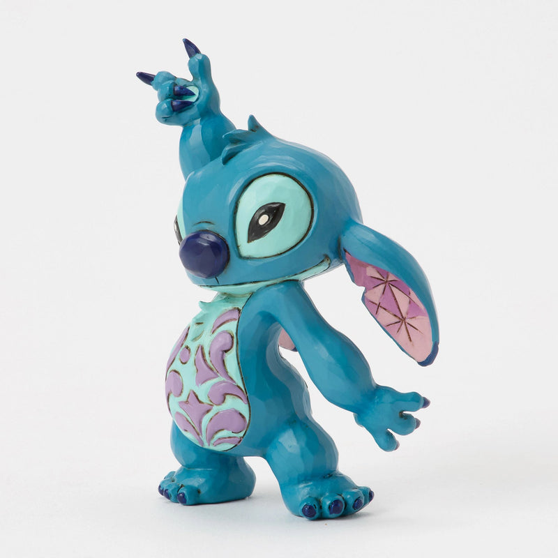 "Cette création pleine de vie signée Jim Shore capture à merveille l’esprit joueur de Stitch, en pleine danse. Qu’il s’agisse d’un hula ou d’un pas à la Elvis, ses mouvements insouciants débordent de charme et de malice. Son ventre orné de motifs rosemaling et ses oreilles décorées complètent parfaitement cette scène haute en couleur. Ces figurines ne sont pas des jouets pour enfants. Destiné aux adultes uniquement."